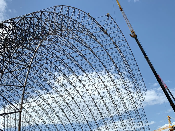 (2)网架加工前应对现场尺寸进行复测,确认无误后方可进行加工、安装;网架制作、运输、安装应遵守《空间网格结构技术规程》JGJ7-2010、《钢网架濮阳螺栓球节点》JG/T 10-2009、《钢网架濮阳螺栓球节点用高强度螺栓》 GB/T 16939-2016、《濮阳钢结构濮阳工程濮阳施工规范》 GB50755-2012、《濮阳钢结构濮阳工程施工质量验收标准》 GB50205-2020。